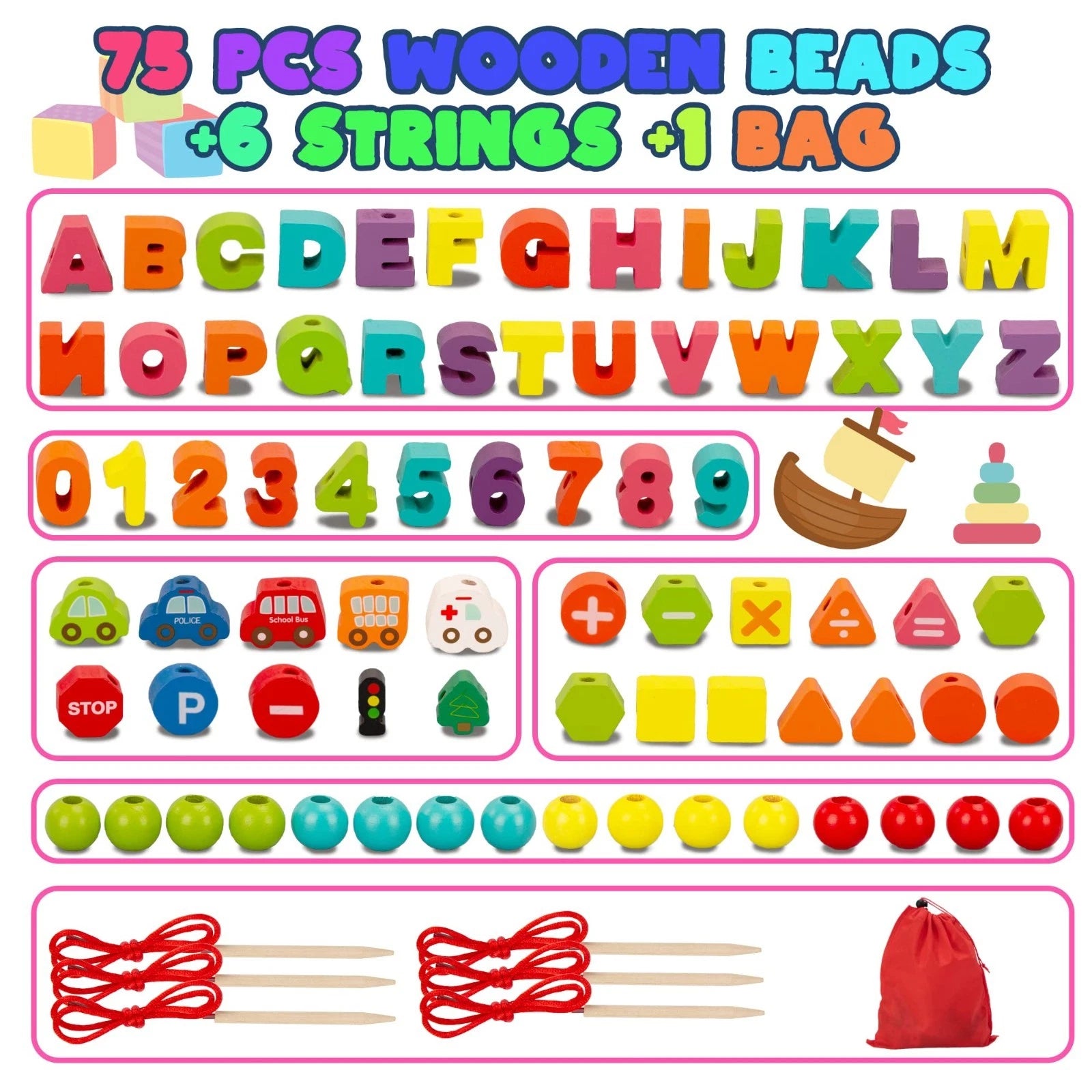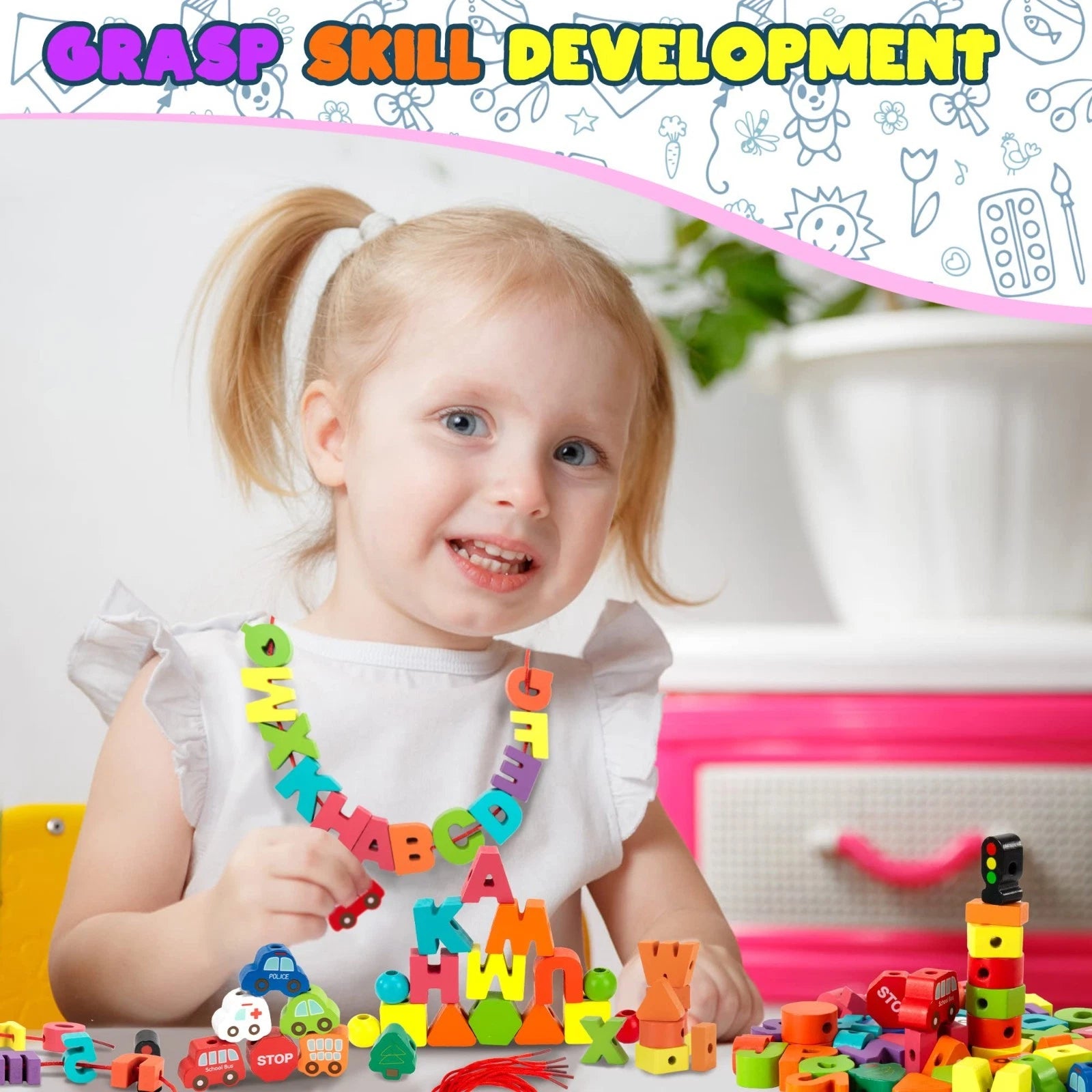 Wooden Threading Beads Toy Set for Toddlers – Montessori Fine Motor Skills Learning Toy