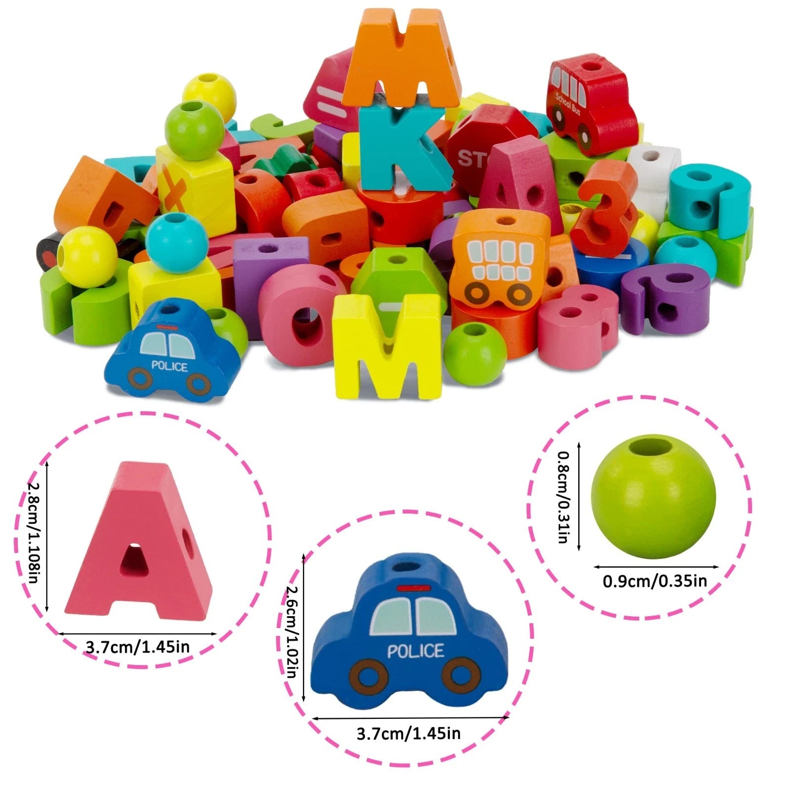 Includes: Colorful wooden beads, 4 laces, wooden threading needle, and storage bag