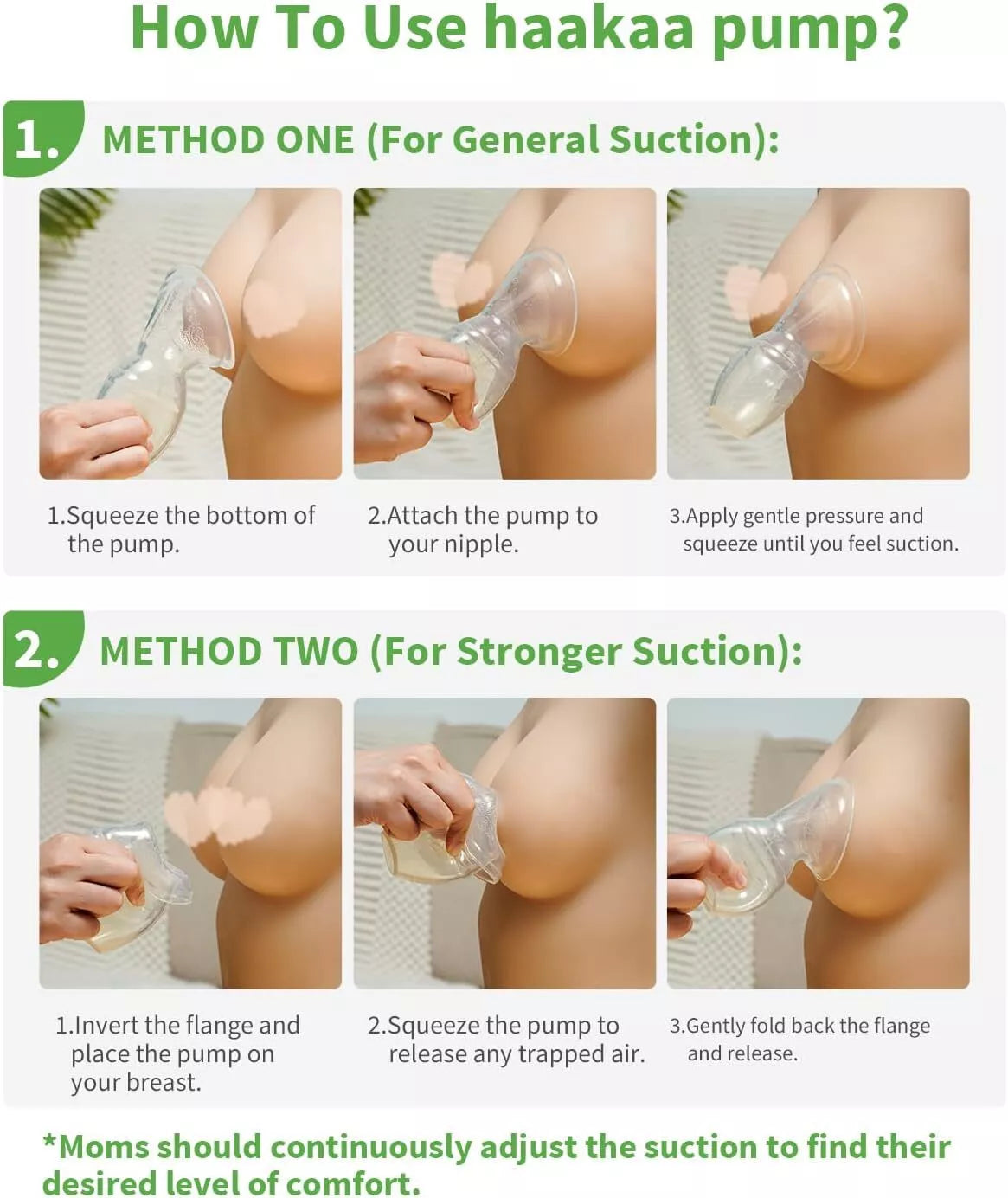 Efficient Haakaa Pump: haakaa silicone breast pump lets you express milk using the power of natural suction! Simply squeeze, attach to your breast and let it work its magic.