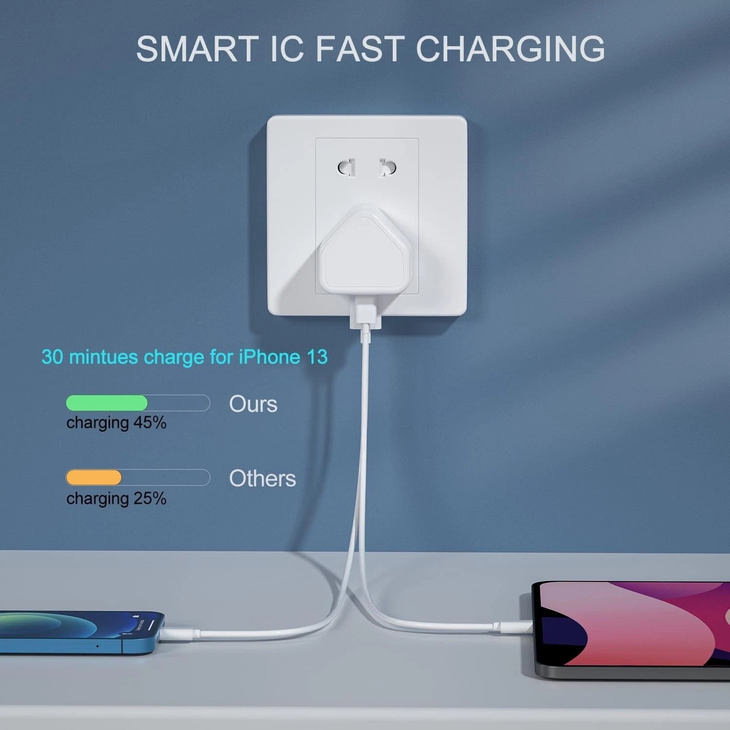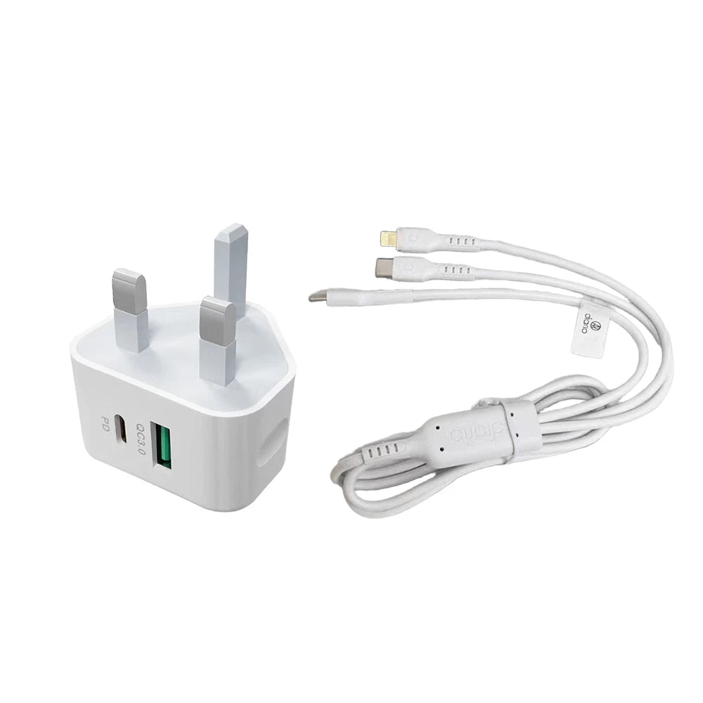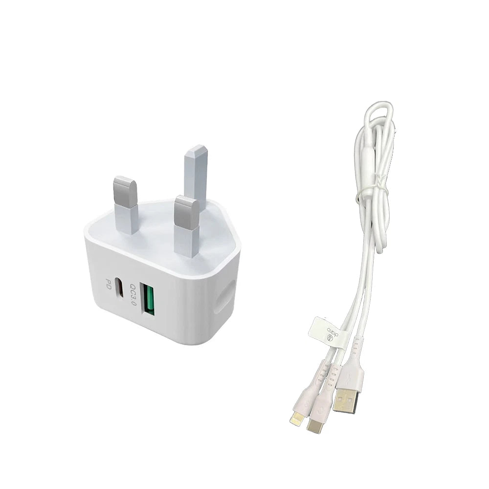 Pack USB C Plug UK iPhone Charger Fast Phone Apple USBC Lighting 2 in 1 Cable