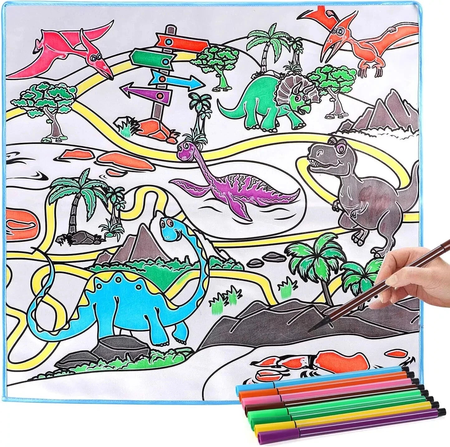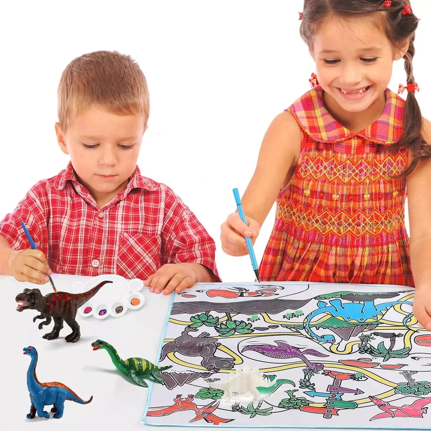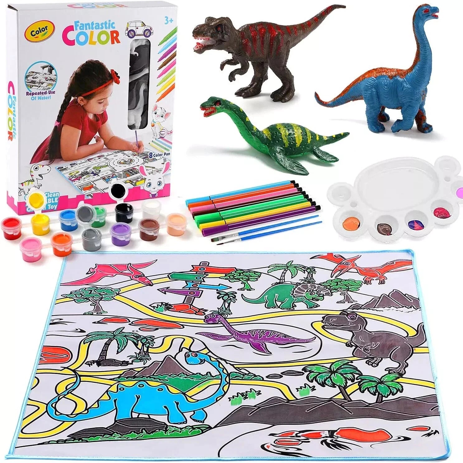 Painting dinosaur playmatYour kids can paint the dinosaur playmat with the colored brushes |