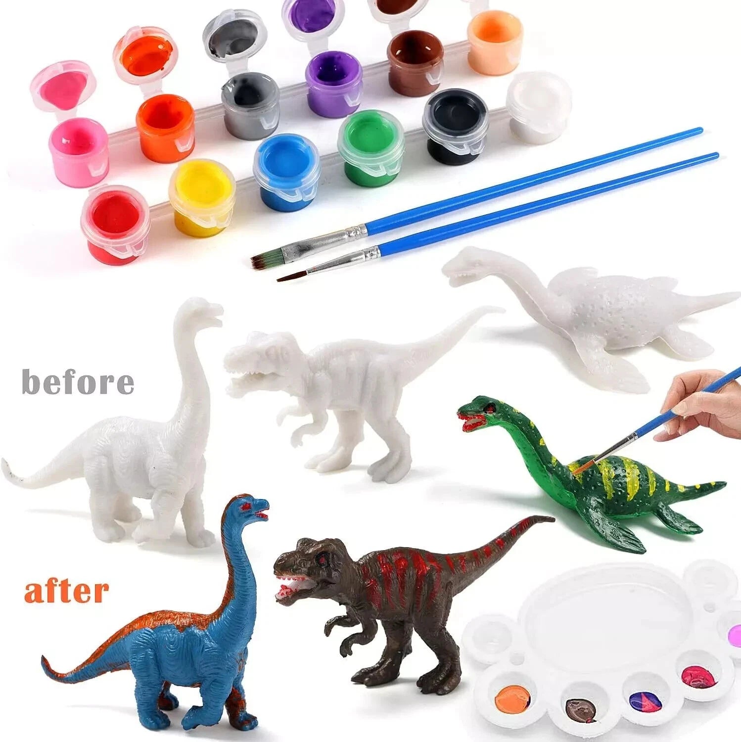 Safe for kidsThis dinosaur crafts for kids is made of high-quality solid resin with non-toxic paint and easy-to clean paintbrushes, conforms to US toys Standards, Approved ASTM and CPSIA test. |