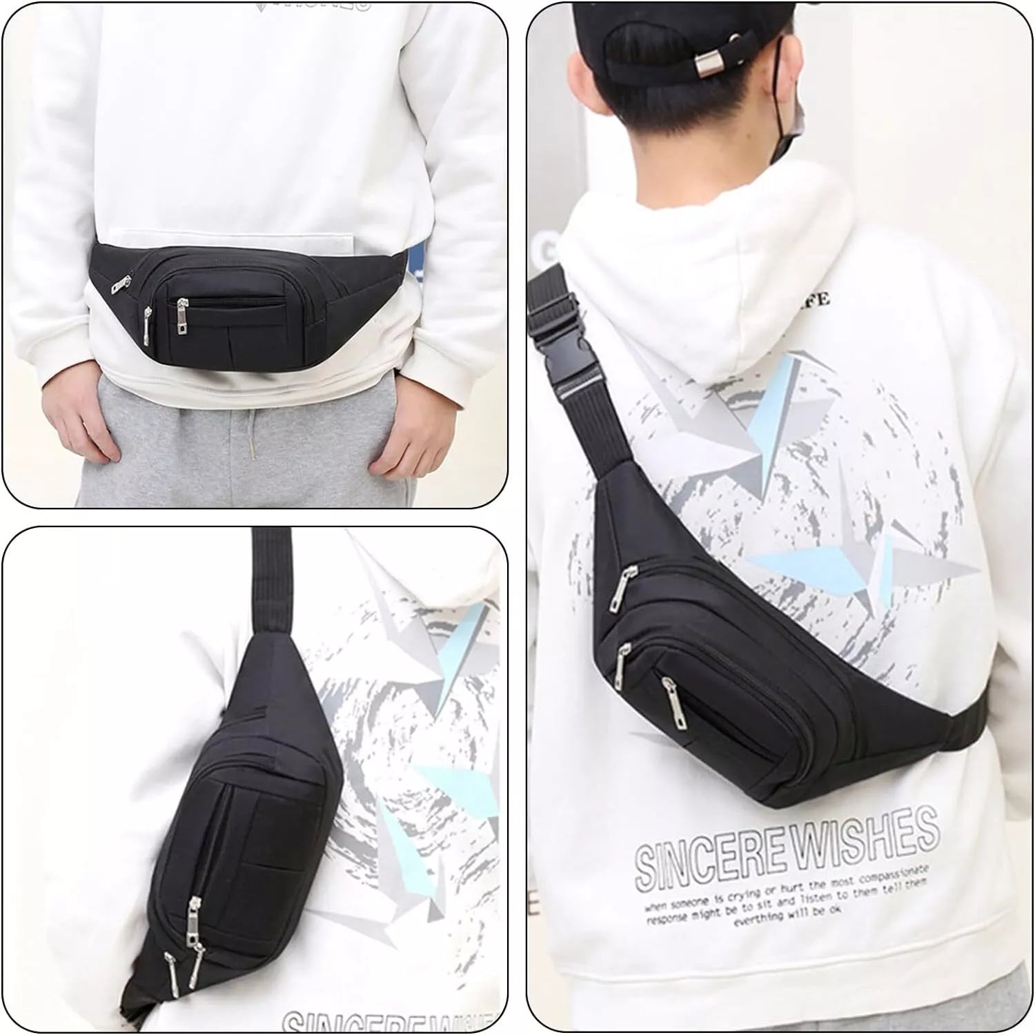 Waist Bag Black Belt Waterproof 4 Zipper Pockets Outdoor Sports Hiking Jogging